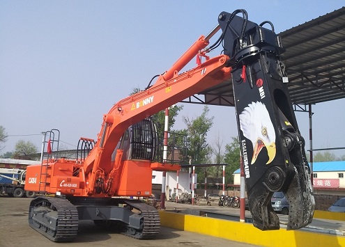 CJ420-9柴油型大力剪適用于報(bào)廢汽車的拆解,車架、車梁、軸等鋼件的剪切,鋼廠料場(chǎng)廢鋼剪切,具有以下先進(jìn)特點(diǎn)